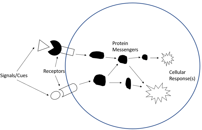 The notochord is formed at a time in development when unspecialized cells become designated for certain tissue types, such as muscle, brain, and heart. This process involves tightly regulated gene expression, which is coordinated through signaling pathways. A signaling pathway involves a receptor on the outside of a cell responding to an environmental stimulus or other cue. The signal is then transmitted through the cell via protein messengers and causes a response, such as a gene being turned “on” or “off”. Furthermore, different pathways can be interconnected, forming networks.